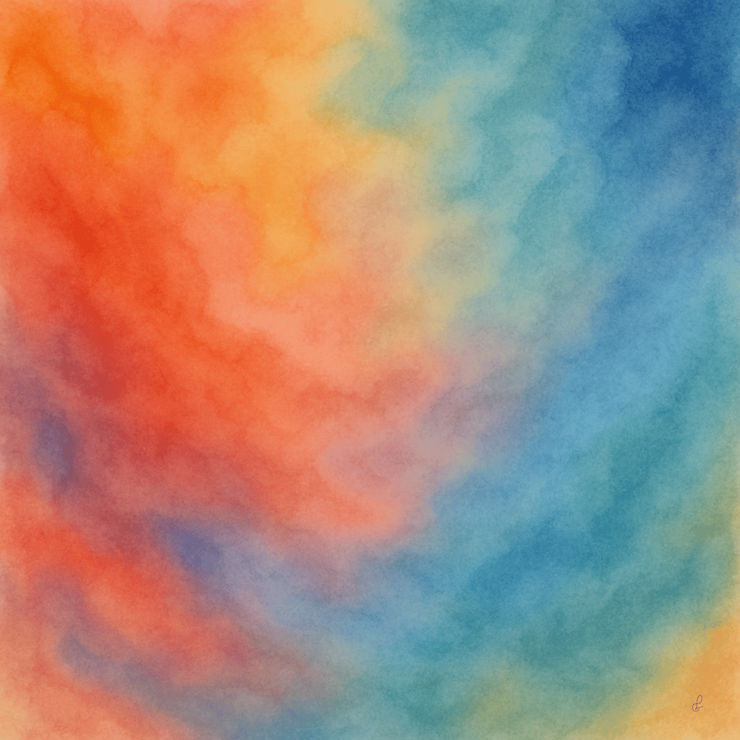 Arte Digital Abstracto en Acuarela - "Fusión de colores cálidos y fríos"