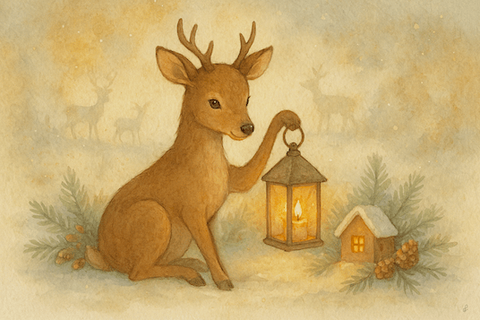 "Venado en Navidad" Arte digital Tierno arte digital que captura la magia de la temporada. Un venado ilumina y contempla una casita entre tonos cálidos y pinceladas suaves, evocando paz y conexión con la naturaleza invernal. Perfecto para impresiones, tarjetas o decoración digital navideña.
