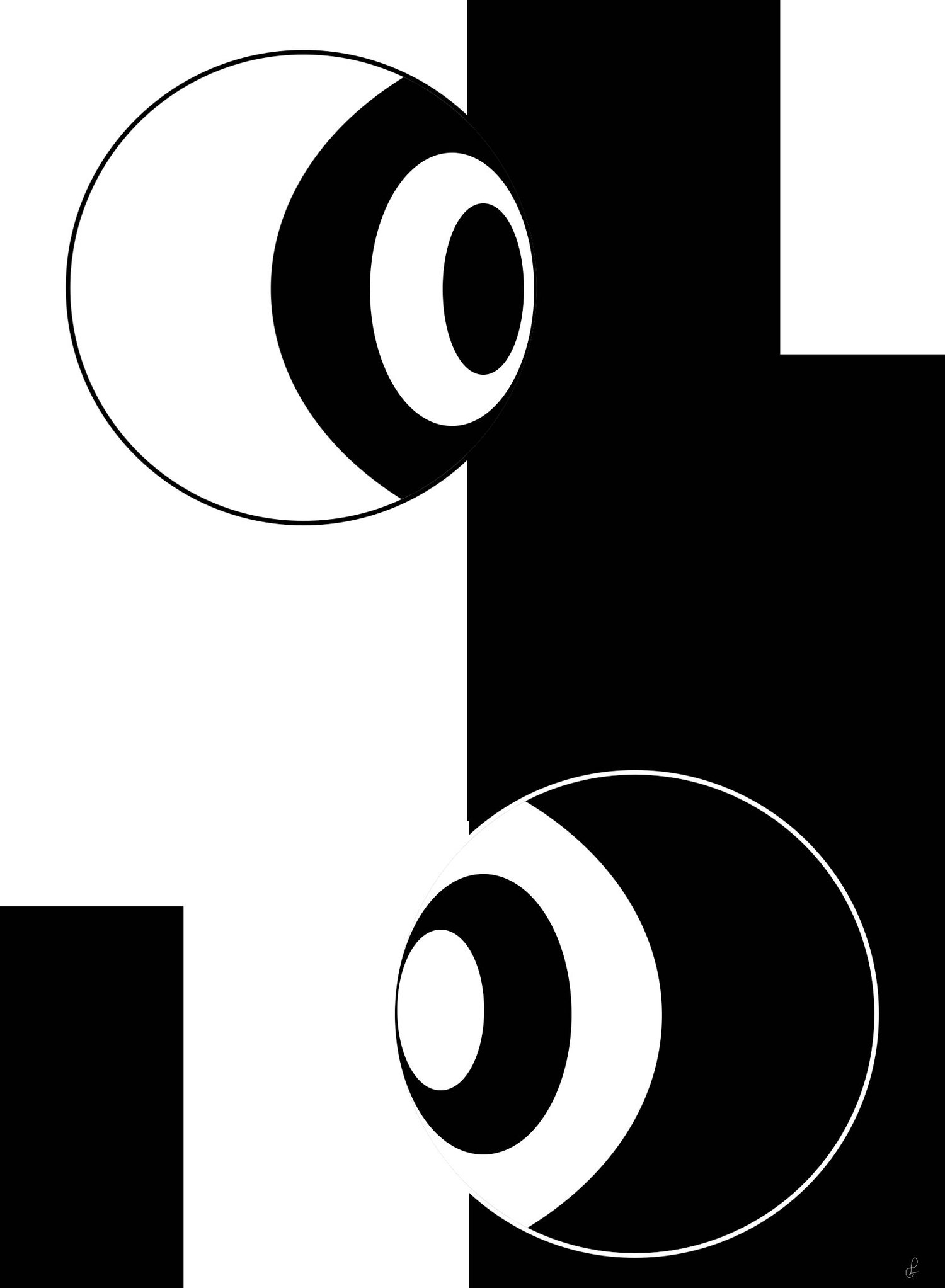 Mirada minimalista, descubre la fuerza del minimalismo con esta pieza única que representa dos ojos mediante círculos simples, en una poderosa paleta monocromática.